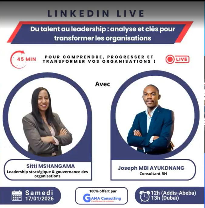 Avec : Joseph Mbi Ayukndang, Consultant RH et Sitti MSHANGAMA, Leadership stratégique & gouvernance des organisations.