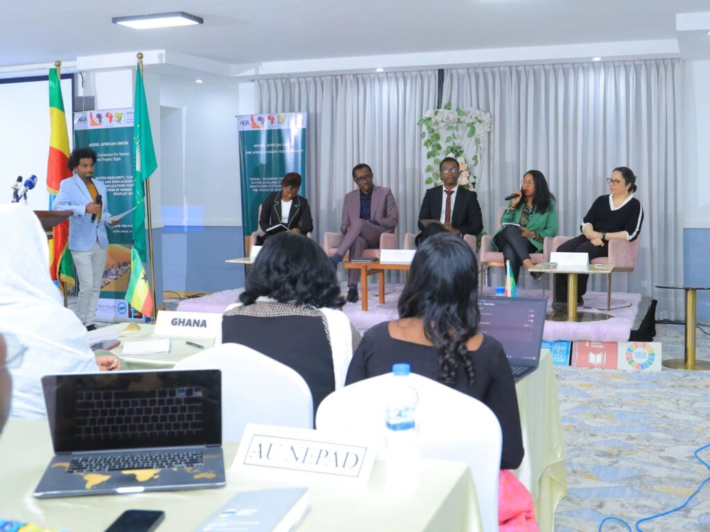 J’ai eu le plaisir d’être invitée à intervenir comme panéliste lors du Pre-AU Youth Summit – Model AU-Ethiopia, organisé à Addis-Abeba, où de jeunes délégués ont simulé un Sommet de l’UA et débattu de sujets majeurs liés à la sécurité hydrique, au changement climatique et aux droits humains, en lien avec l’Agenda 2063 et le thème 2026 de l’Union africaine consacré à l’accès durable à l’eau et à l’assainissement.